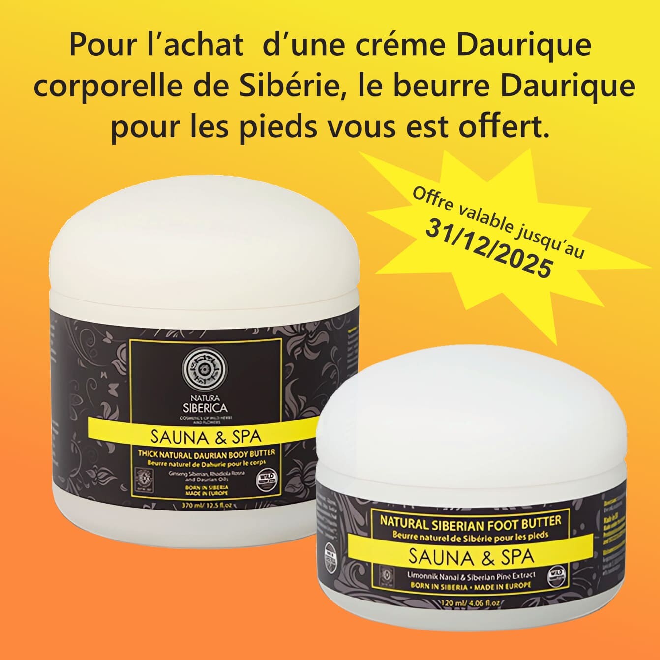 Achetez-en un Dahurian Natural Body Butter (20413) et recevez-en un Siberian Natural Foot Butter ( 20414) gratuitement.